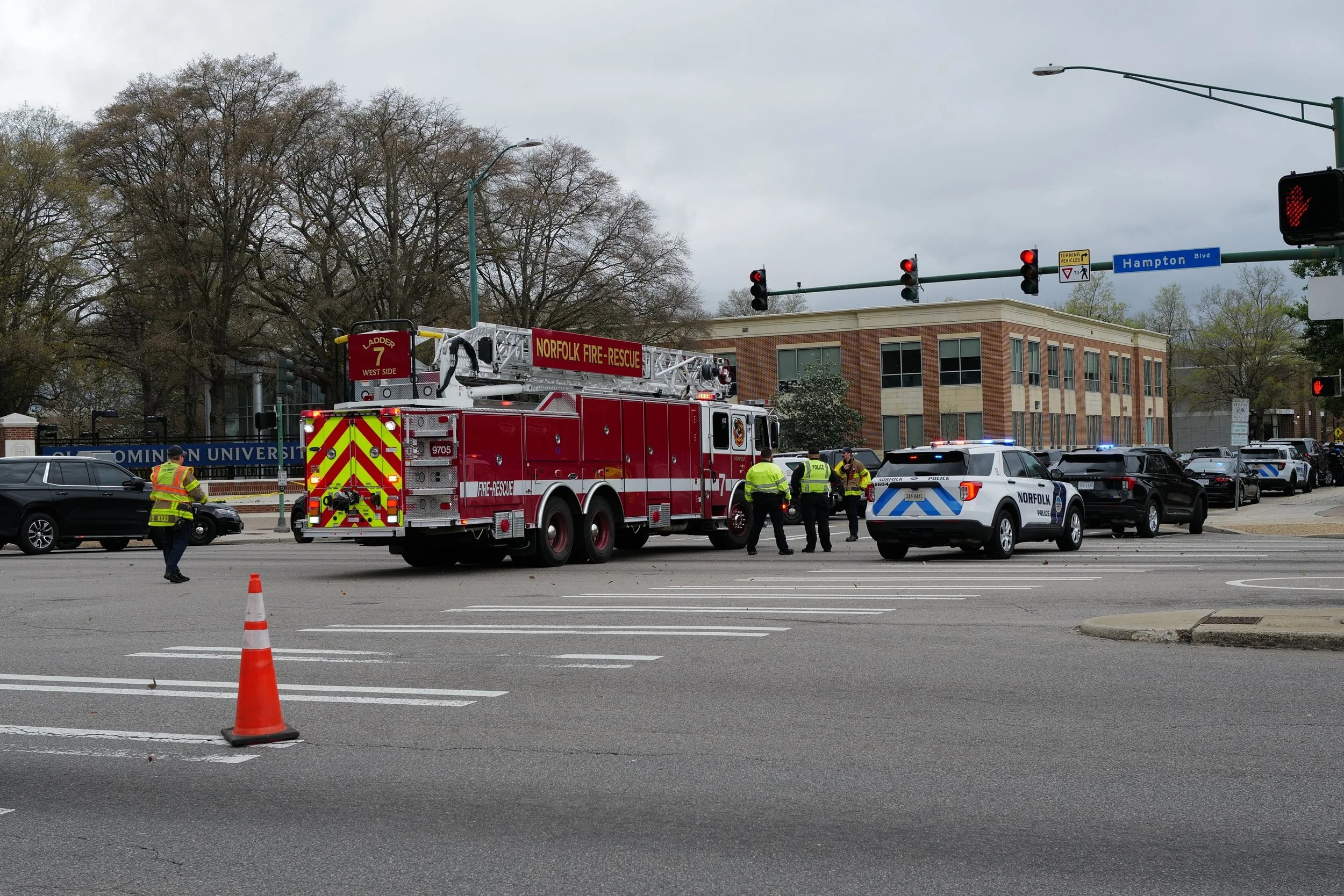 First responders block access to Old Dominion University's campus following an on-campus shooting on March 12, 2026. Photo by Yiqing Wang // WHRO