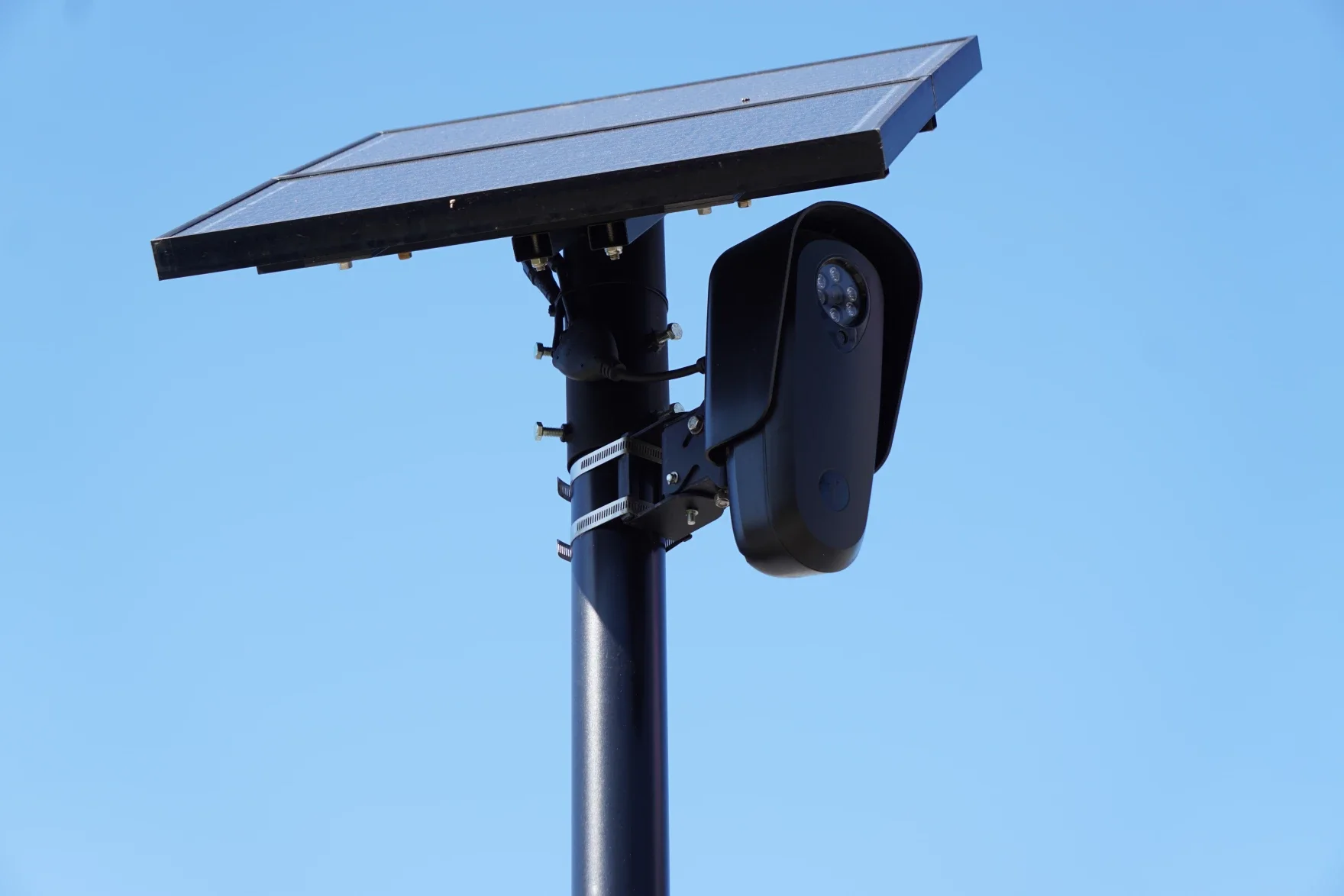 A Flock camera on South Main Street in Bridgwater, Virginia, captures the comings and goings of traffic. The town has five strategically placed Flock cameras. They capture images of nearly 60,000 vehicles every month. Photo by Christopher Tyree // VCIJ