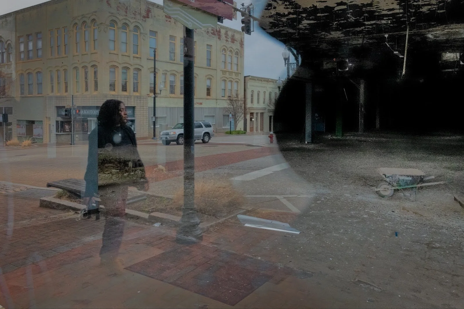 A storefront on Main Street in Danville sits vacant. The city in south central Virginia has lost several major industries over decades, including the decline of tobacco and then textiles. In 2025, the city was rocked again by the mass layoff of over 800 employees at one the region's largest employers, Goodyear. Photo by Christopher Tyree//VCIJ